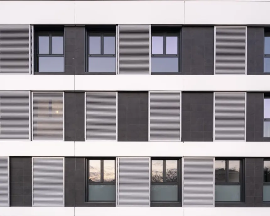 Estética de invisibilidad. Sistema innovador de aluminio con "hoja oculta": desde el exterior solo se ve el marco, haciendo indistinguibles las partes practicables y fijas de la ventana, y aumentando la superficie de acristalamiento.