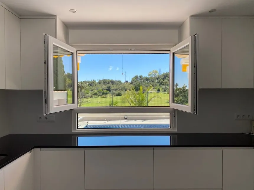 Kömmerling 76 MD Zero es un éxito arquitectónico en España. El diseño de hoja oculta permite que desde el exterior la ventana parezca un acristalamiento fijo, aunque se abra. Esto proporciona líneas de fachada limpias y aumenta el área de luz comparado con ventanas estándar.