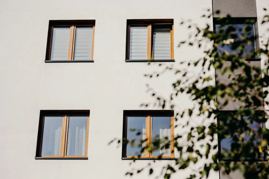 Las ventanas con perfil de 82 mm y acristalamiento de 52 mm resultan pesadas. Utilizamos obligatoriamente grupos de bisagras reforzados (por ejemplo, Roto NX o Siegenia Titan), diseñados para un peso de hoja de 130 kg o más.