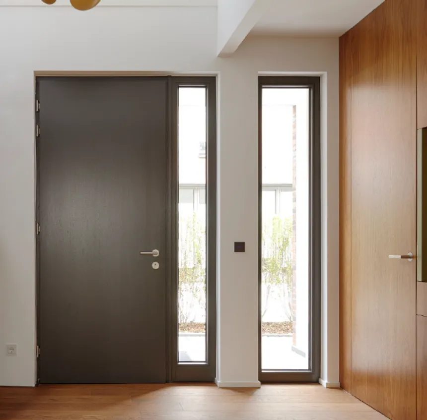 Visualmente es indistinguible de una puerta de aluminio de clase premium, que cuesta 2-3 veces más. Pero por dentro es un perfil de PVC cálido, que retiene mejor el calor que el metal frío.